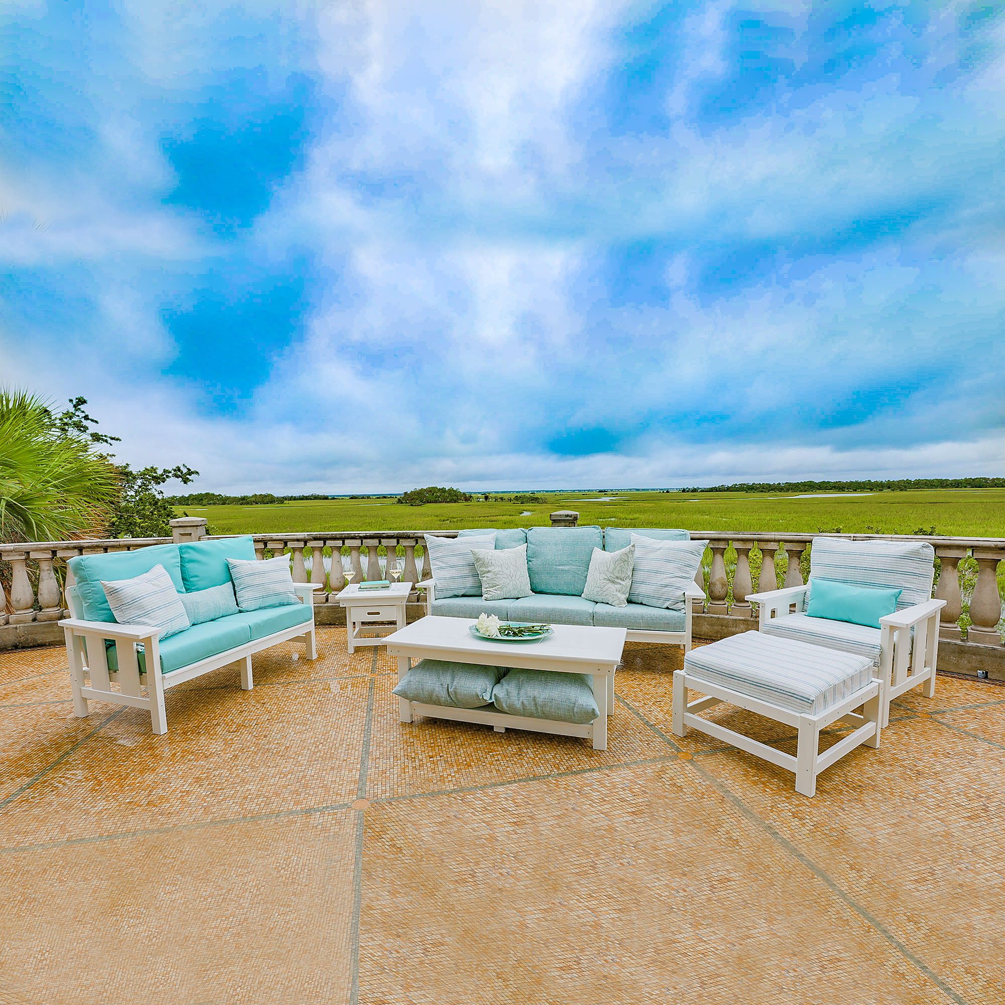 The DURAWOOD® Comfort Collection from Pawleys Island features made from HDPE recycled consumer plastic, sterilized for safety and to eliminate impurities. The DURAWOOD® contains no waste-wood fiber, so it not only won't absorb water, but also won't rot, splinter, crack or attract termites. It also never needs stain or any other kind of sealant, yet holds up to vigorous rains, extreme temperatures and high winds, making it the perfect outdoor furniture material.