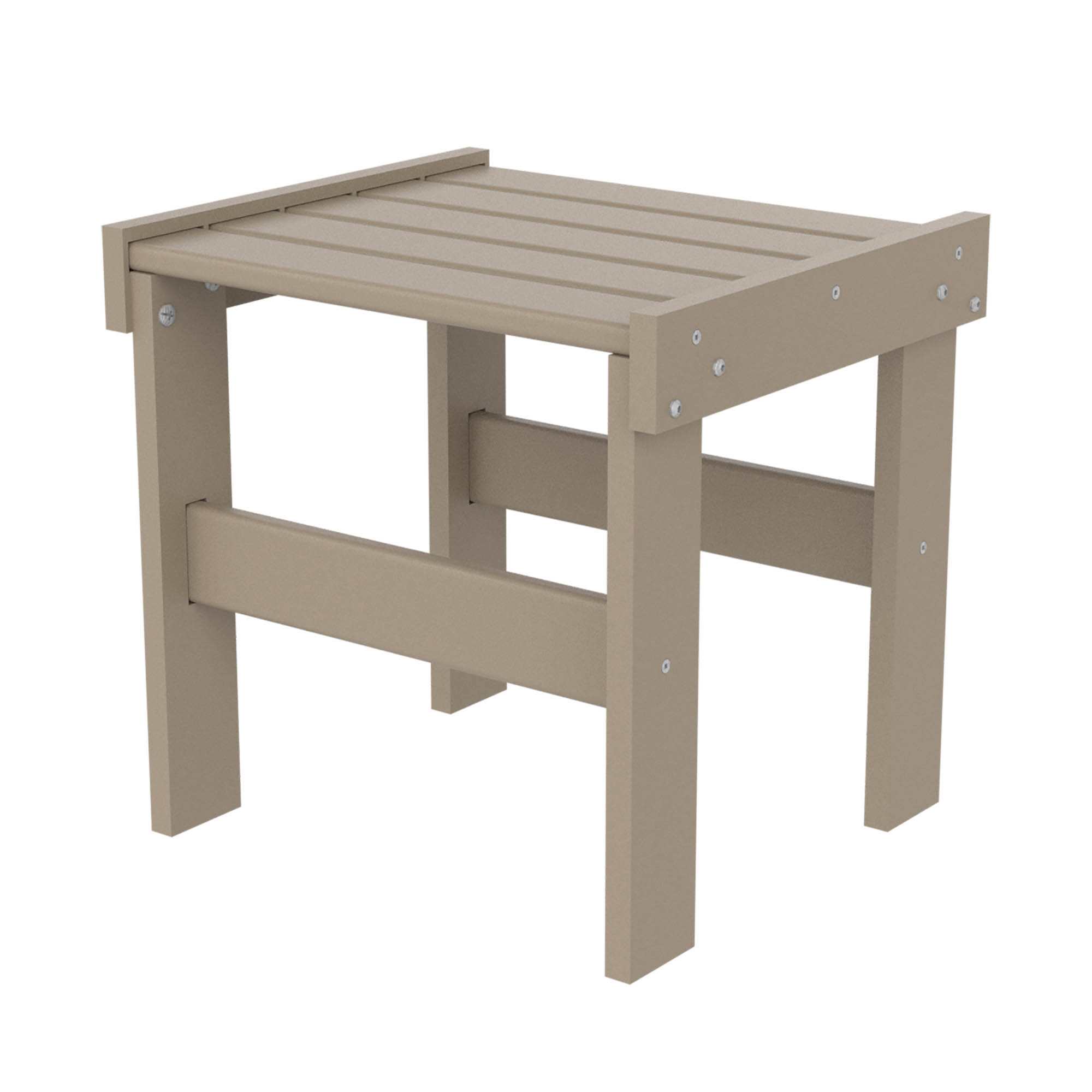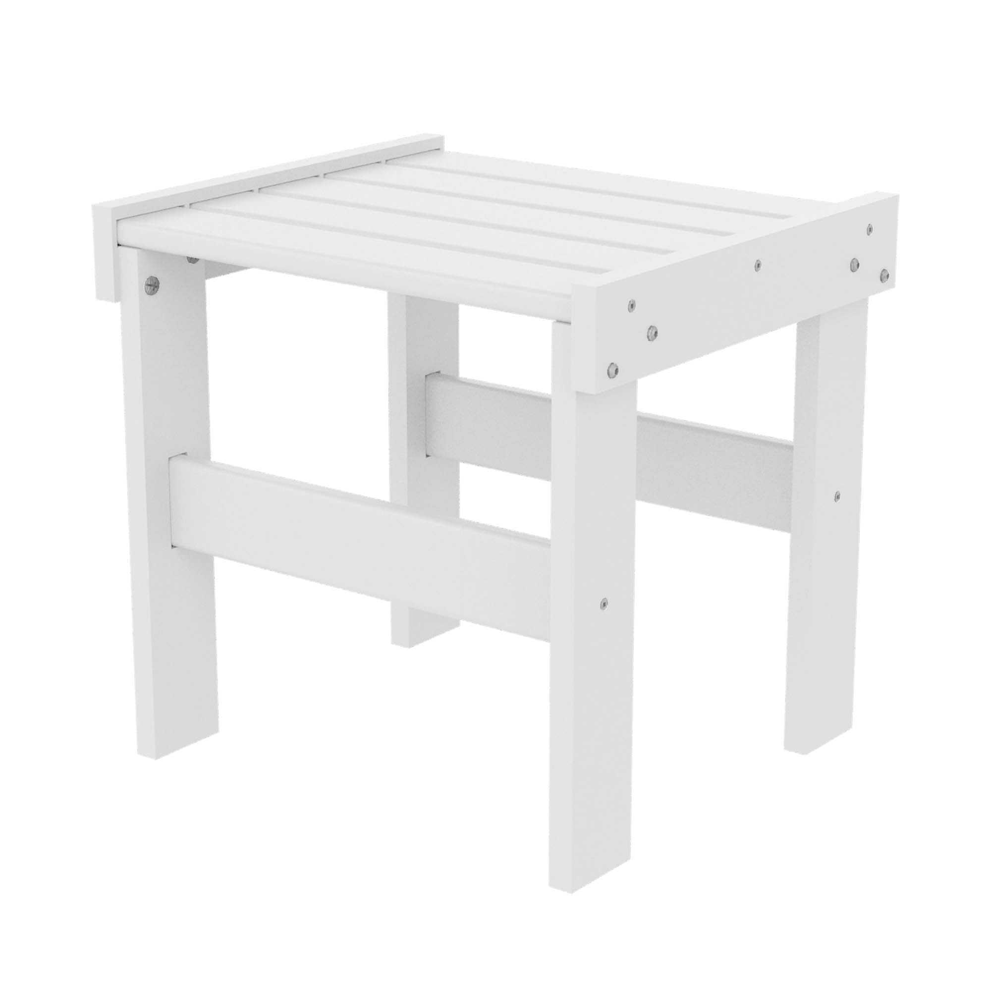 The DURAWOOD® poly lumber used to construct this side table is made from HDPE recycled consumer plastic that's been sterilized for safety and to eliminate impurities. DURAWOOD® contains no waste-wood fiber, so it not only won't absorb water but also won't rot, splinter, crack or attract termites. It also never needs stain or any other kind of sealant, yet holds up to vigorous rains, extreme temperatures, and high winds, making it the perfect outdoor furniture material.