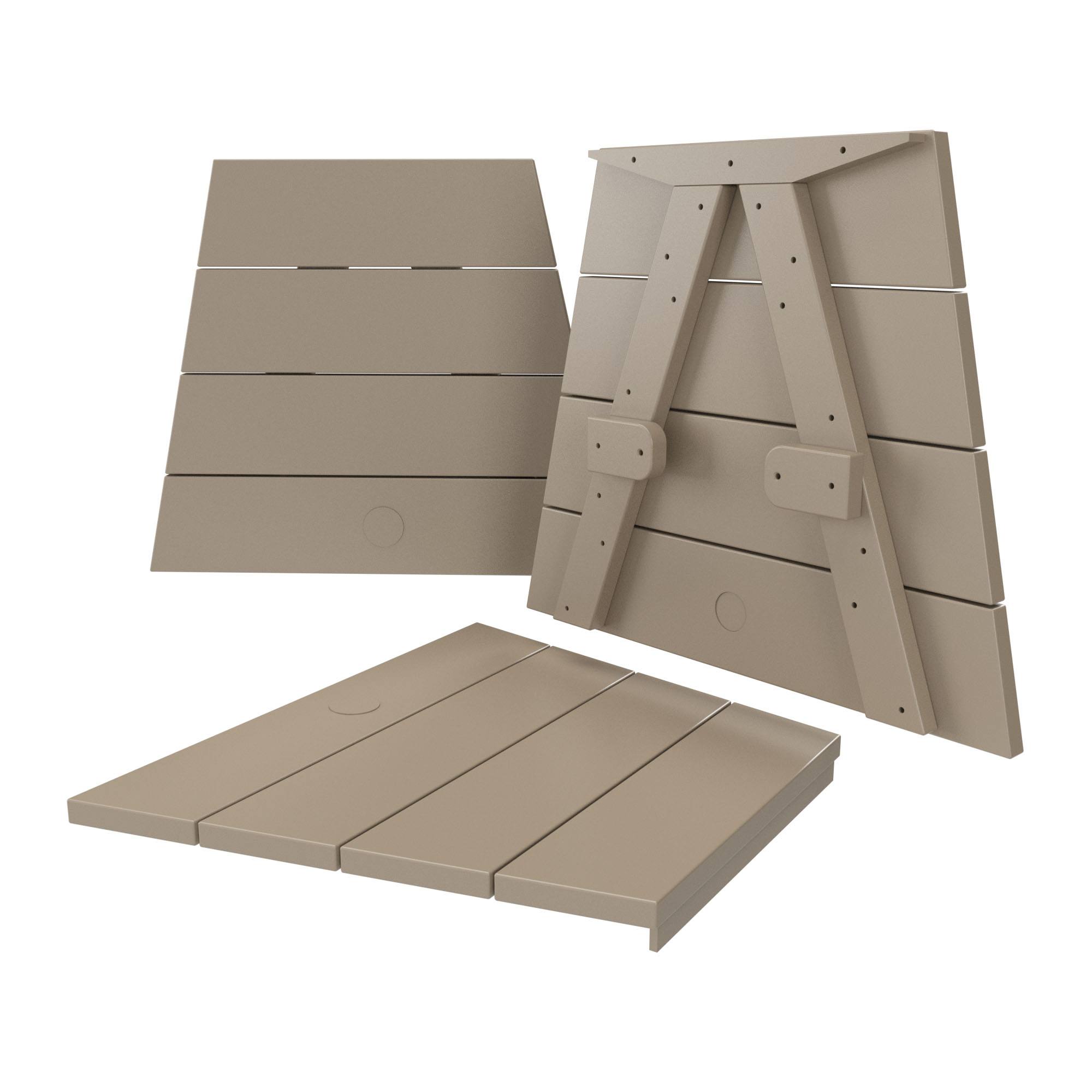 The DURAWOOD® poly lumber used to construct this Refined Tete-A-Tete is made from HDPE recycled consumer plastic that's been sterilized for safety and to eliminate impurities. DURAWOOD® contains no waste-wood fiber, so it not only won't absorb water, but also won't rot, splinter, crack or attract termites. It also never needs stain or any other kind of sealant, yet holds up to vigorous rains, extreme temperatures and high winds, making it the perfect outdoor furniture material.