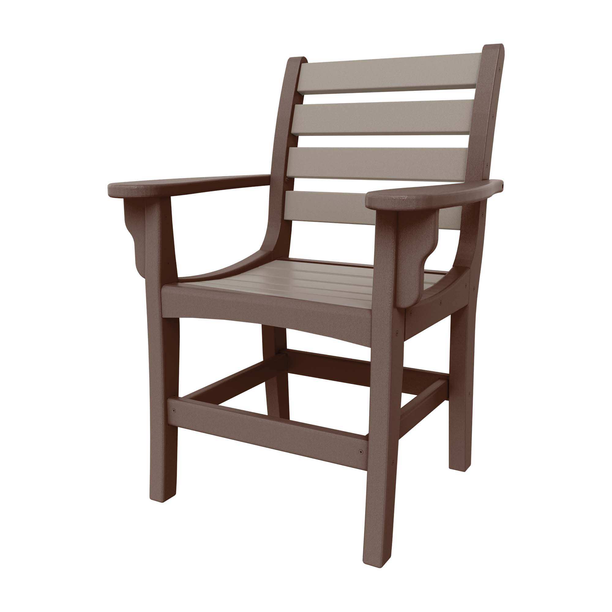 The DURAWOOD®used to construct this dining chair is made from HDPE recycled consumer plastic that's been sterilized for safety and to eliminate impurities. DURAWOOD® not only won't absorb water, but also won't rot, splinter, crack or attract termites. It also never needs stain or any other kind of sealant, yet holds up to vigorous rains, extreme temperatures and high winds, making it the perfect outdoor furniture material.