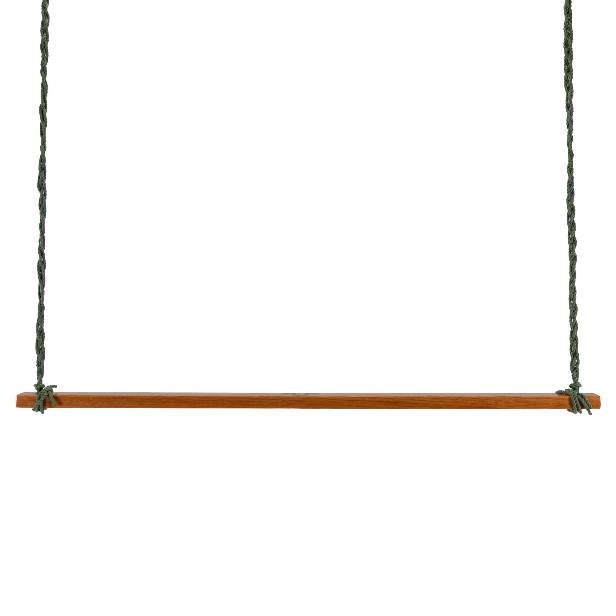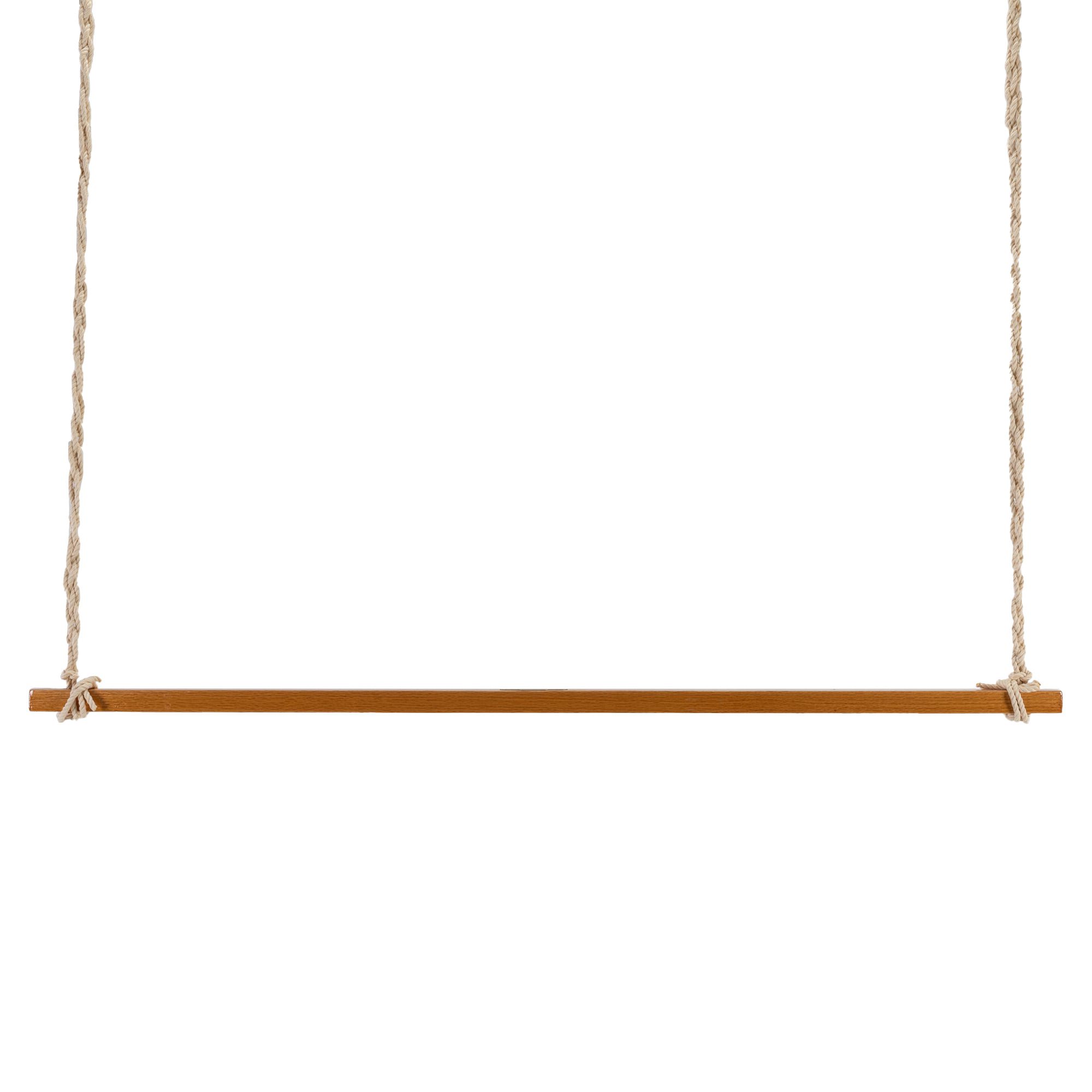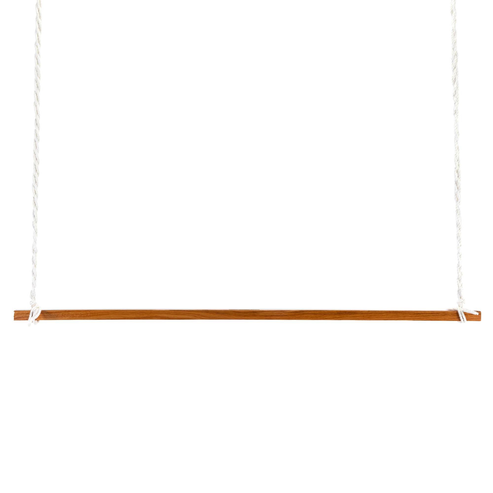 The wood bar of our large Footrest is a solid Southern White Oak that's been sanded to a soft finish and hand-dipped in a marine-grade varnish to shield your footrest from the elements. Southern White Oak is a hardwood renowned for its resistance to warping, cracking, and insect damage. The footrest is attached with two rope braids that attach to your swing chains via Stainless-steel S-hooks.