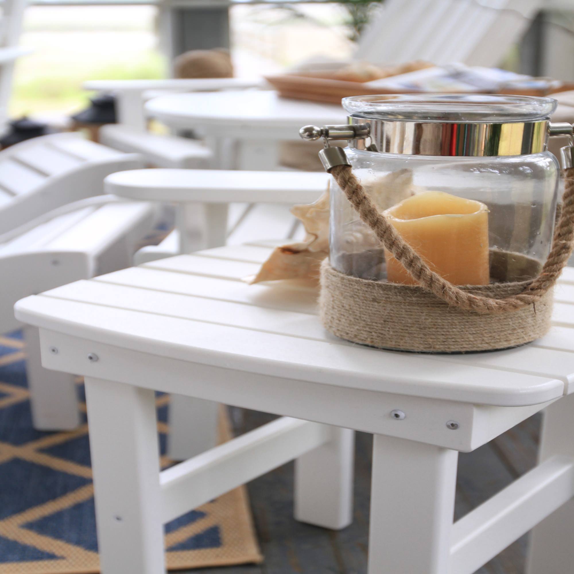 The DURAWOOD® poly lumber used to construct this side table is made from HDPE recycled consumer plastic that's been sterilized for safety and to eliminate impurities. DURAWOOD® contains no waste-wood fiber, so it not only won't absorb water but also won't rot, splinter, crack or attract termites. It also never needs stain or any other kind of sealant, yet holds up to vigorous rains, extreme temperatures, and high winds, making it the perfect outdoor furniture material.