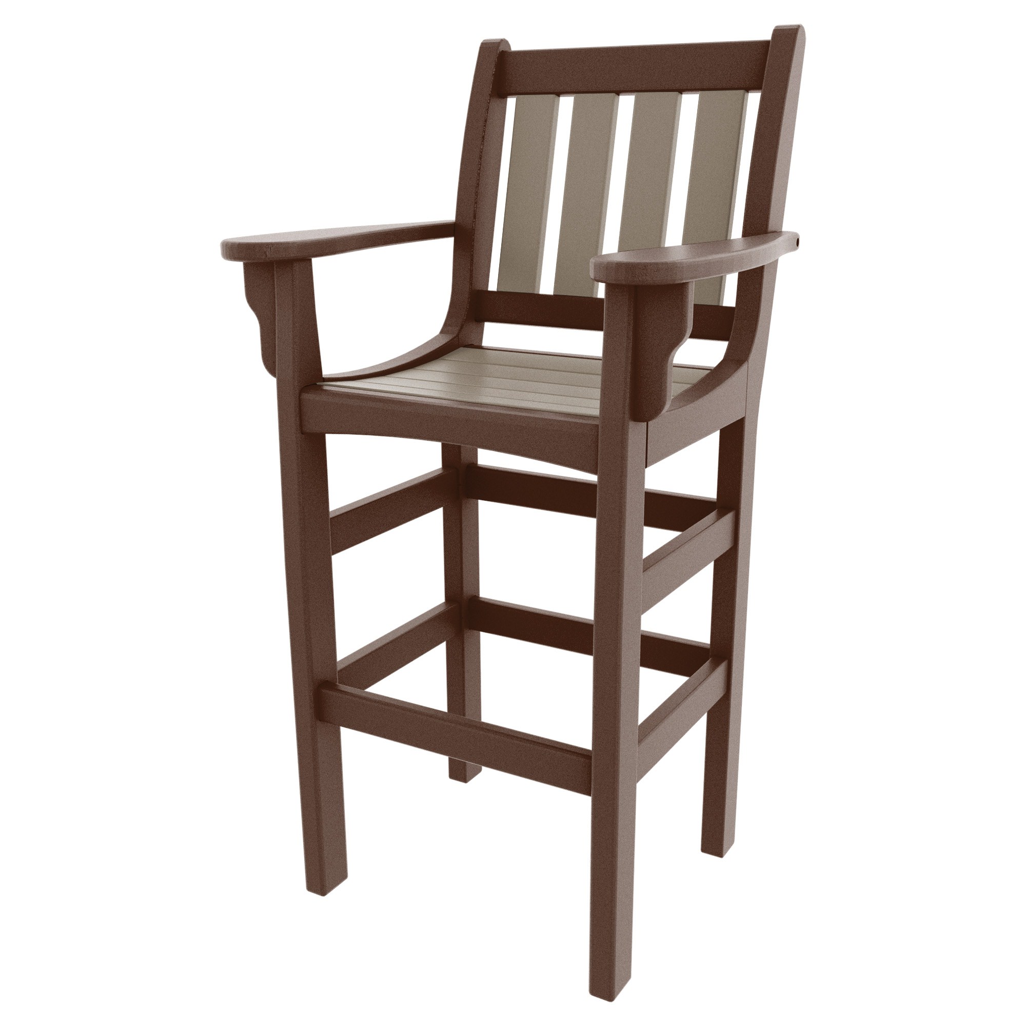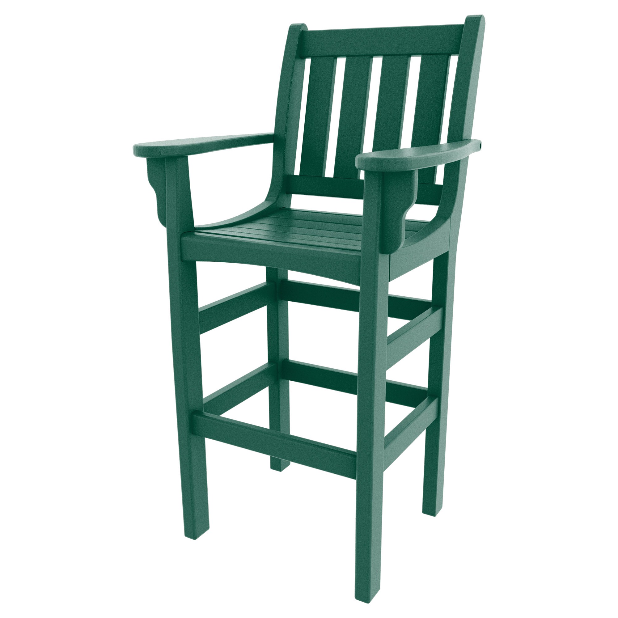 Our Vertical Bar Height Chair with Arms makes its mark as a unique chair that you'll want to enjoy every meal, dessert, and drink in, while relaxing outside. It features a sloping backrest, wide armrests and a contoured seat that sits more upright than our Adirondack chair to promote comfortable, back-friendly posture. Having a higher than normal seat also means this chair includes a spacious footrest for your feet to perch on while you kick back and relax.