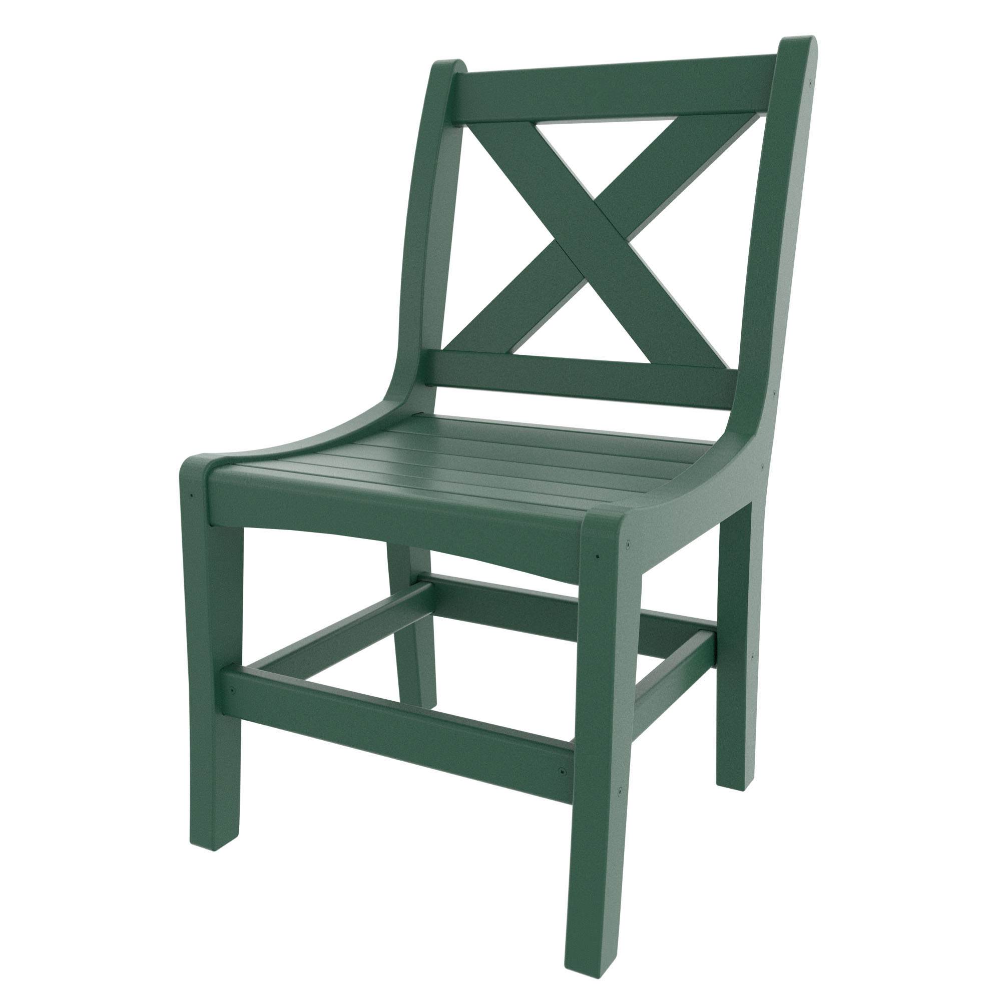 Constructed from weather-resistant DURAWOOD®, these dining chairs are built to withstand the elements, ensuring long-lasting beauty and easy maintenance. The X-Style Back not only contributes to the chair's aesthetic appeal but also provides excellent support for a comfortable and relaxing dining experience.
