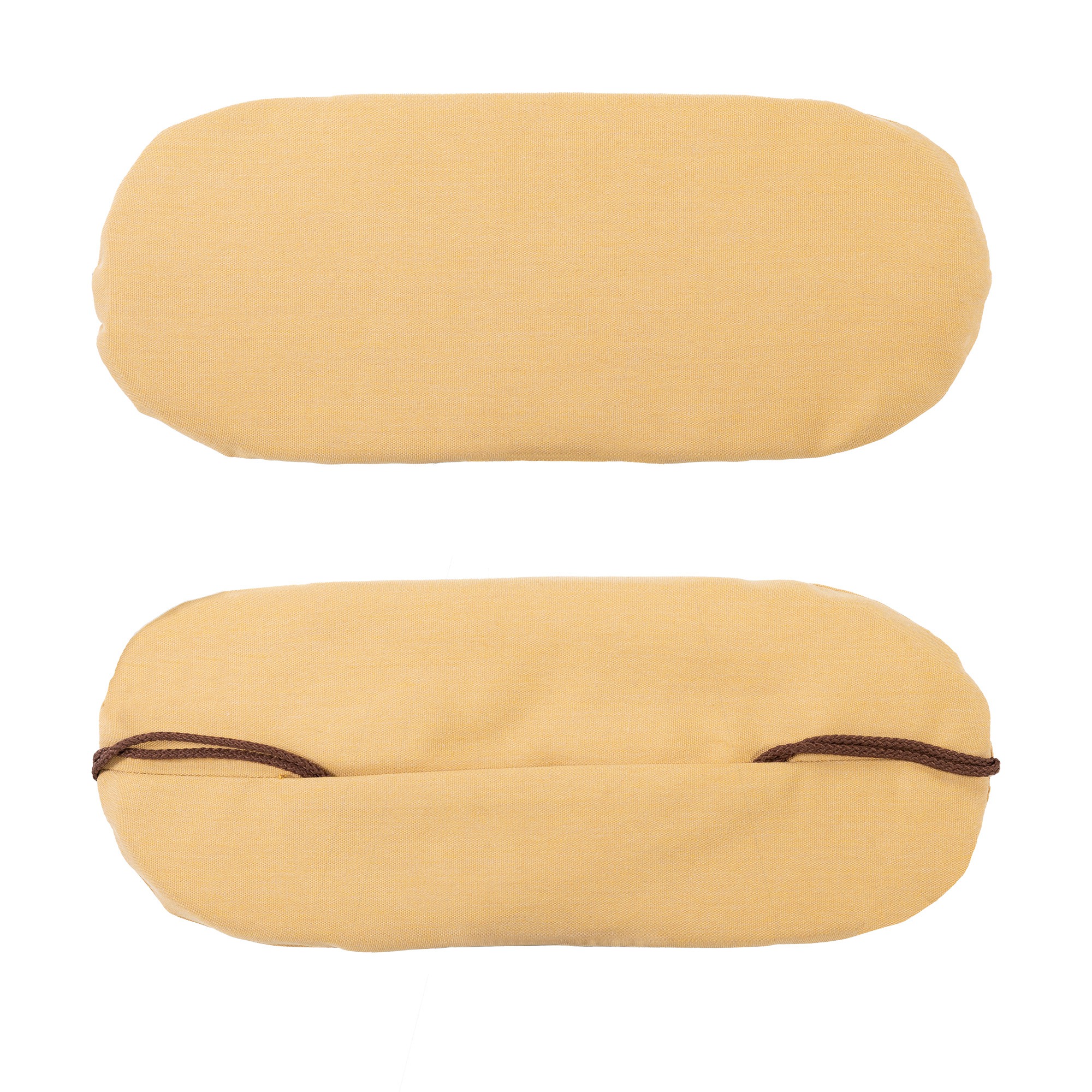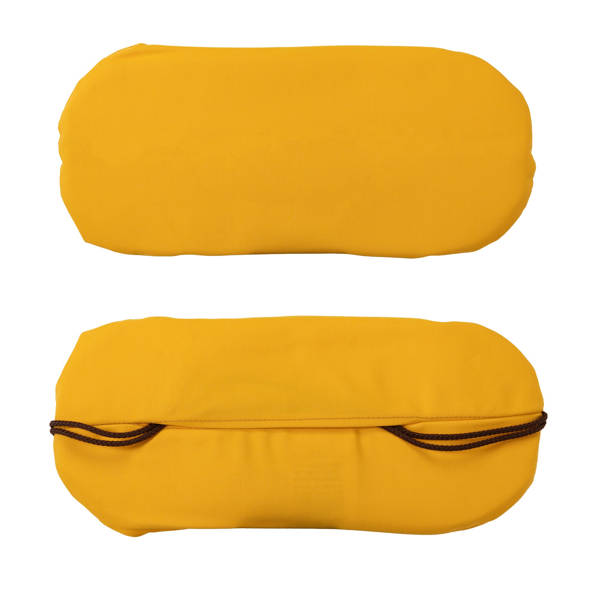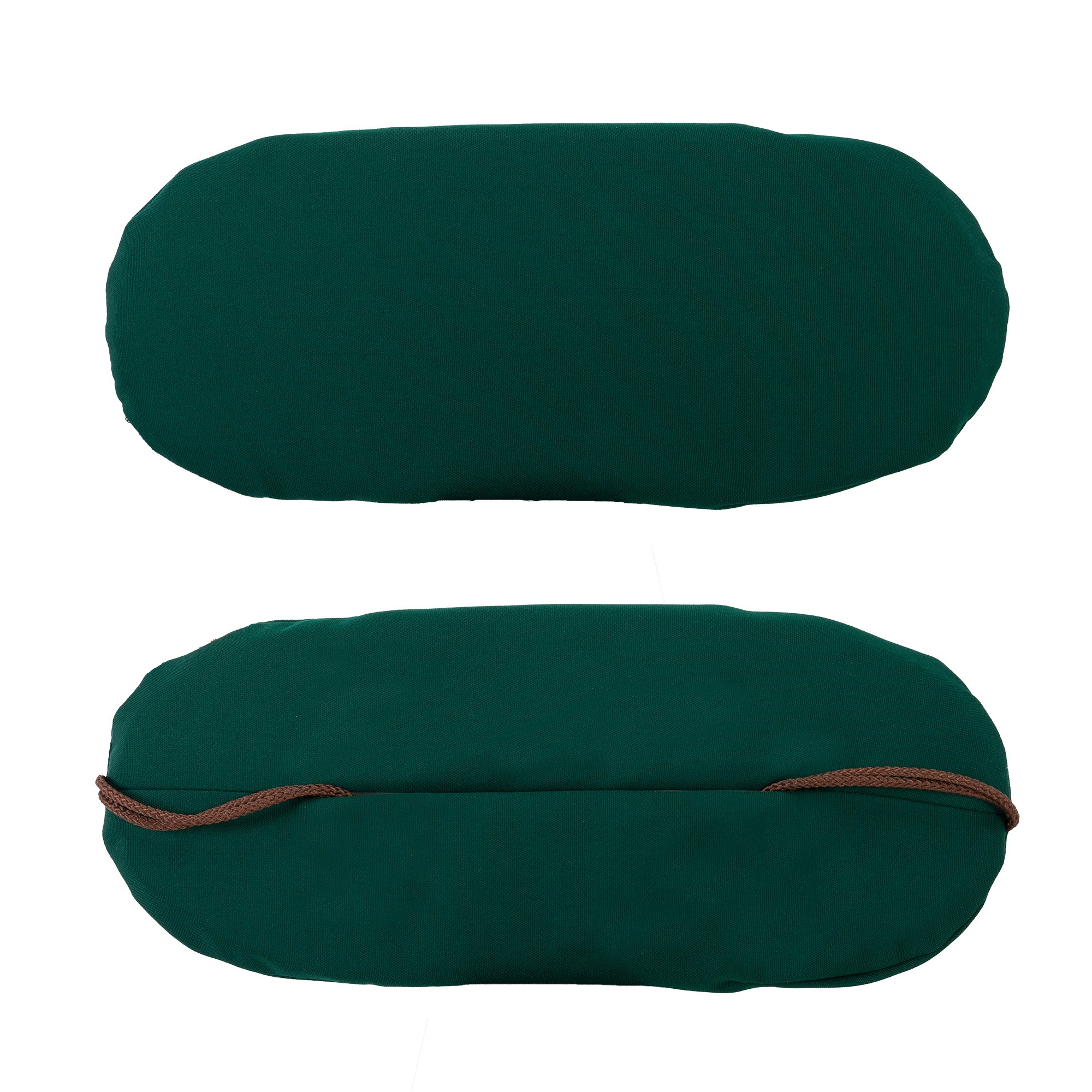 The small oak swing footrest can be used with Single Rope Swings, Single Cushioned Swings, and Tufted Single Swings. The large oak swing footrest can be used with the Double Cushioned Swing.