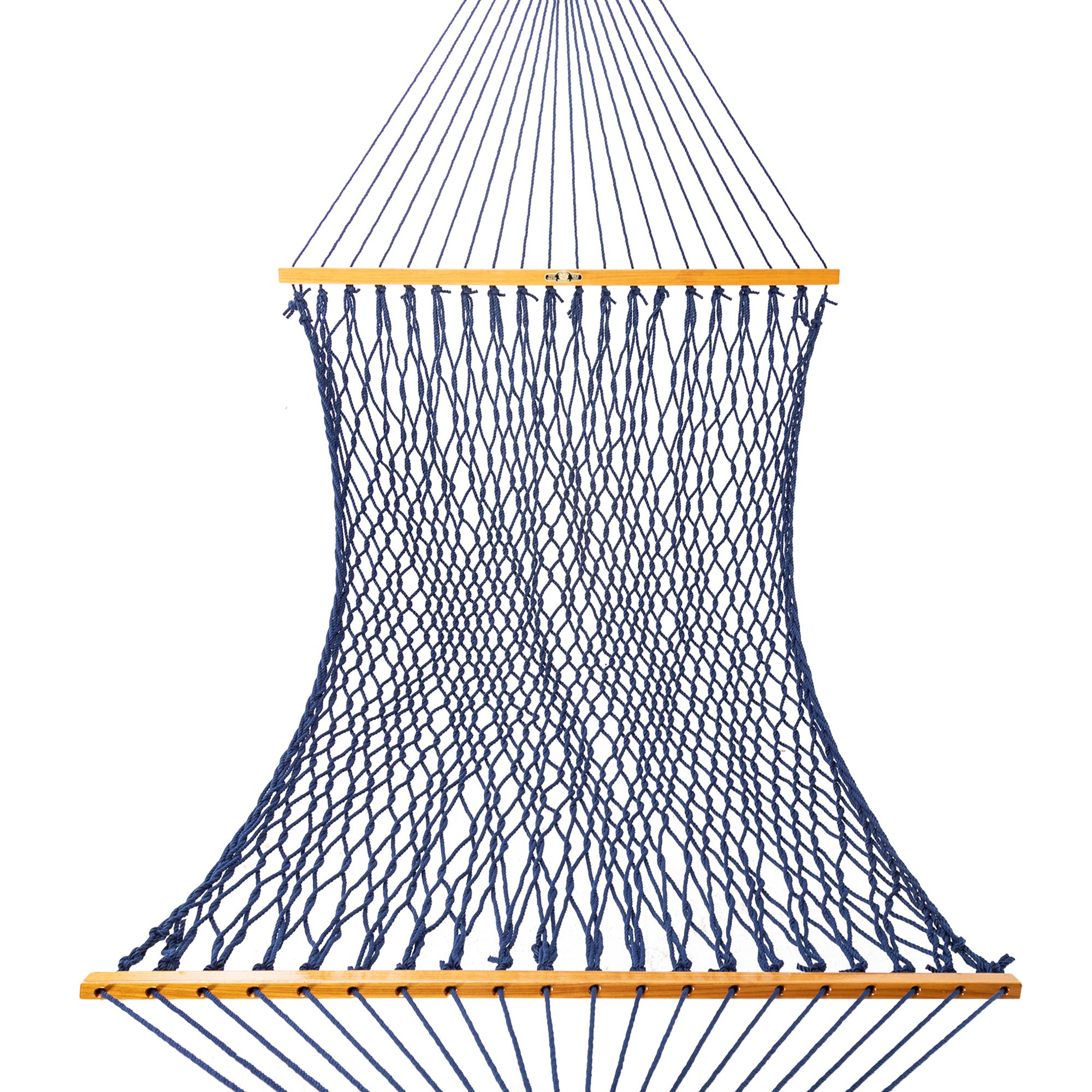 Our own proprietary solution-dyed synthetic blend of rope, DURACORD®, blends the softness of cotton with the durability of polyester. Made in the Carolinas, this combination yields a rope that has excellent color steadfastness and superior feel. DURACORD® is dyed when spun, producing a rope that is colored all the way through. Like a carrot when sliced open, DURACORD® has the same color on both the inside and the outside. Our DURACORD® rope is the densest rope on the hammock market at 85 ft./lb., this results in less stretching and increased support when relaxing in your hammock.