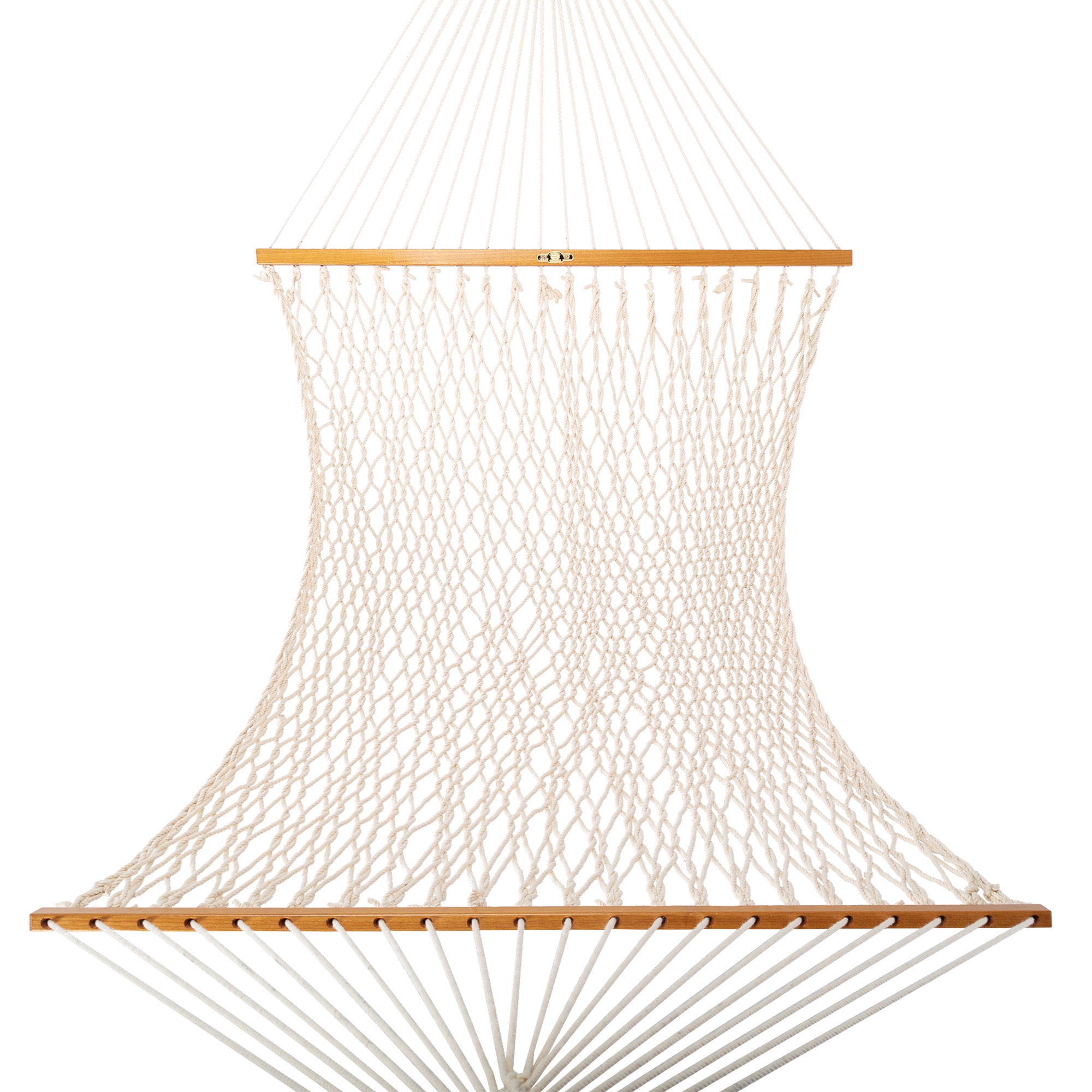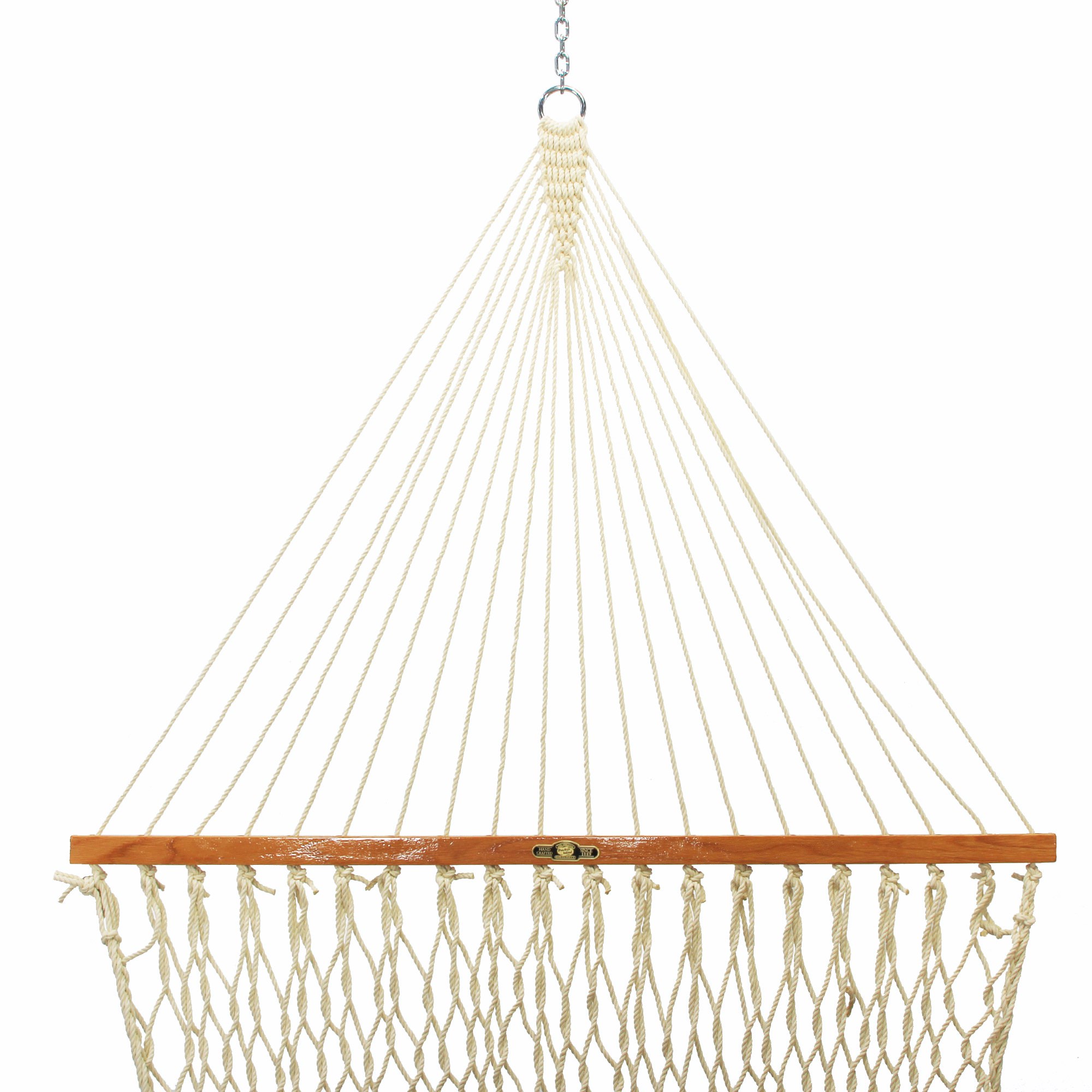 Our own proprietary solution-dyed synthetic blend of rope, DURACORD®, blends the softness of cotton with the durability of polyester. Made in the Carolinas, this combination yields a rope that has excellent color steadfastness and superior feel. DURACORD® is dyed when spun, producing a rope that is colored all the way through.Our DURACORD® rope is the densest rope on the hammock market at 85 ft./lb., this results in less stretching and increased support when relaxing in your hammock.