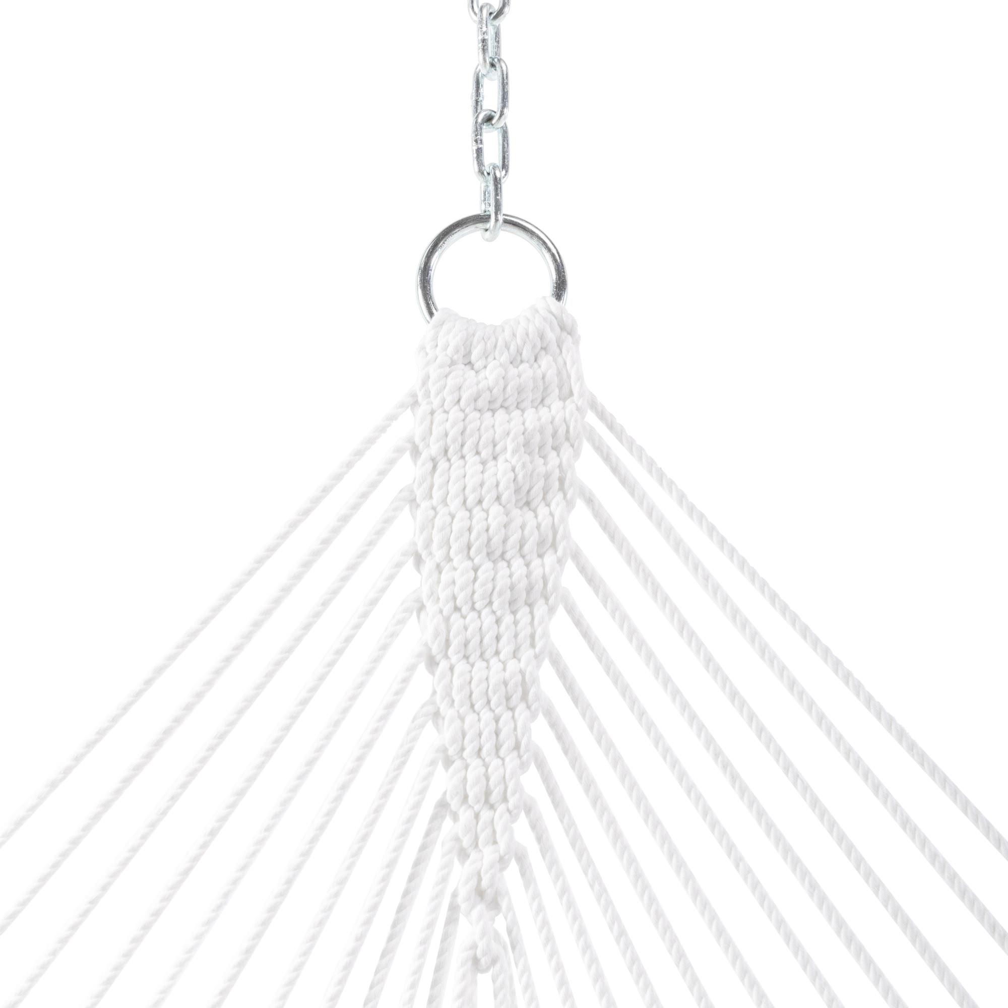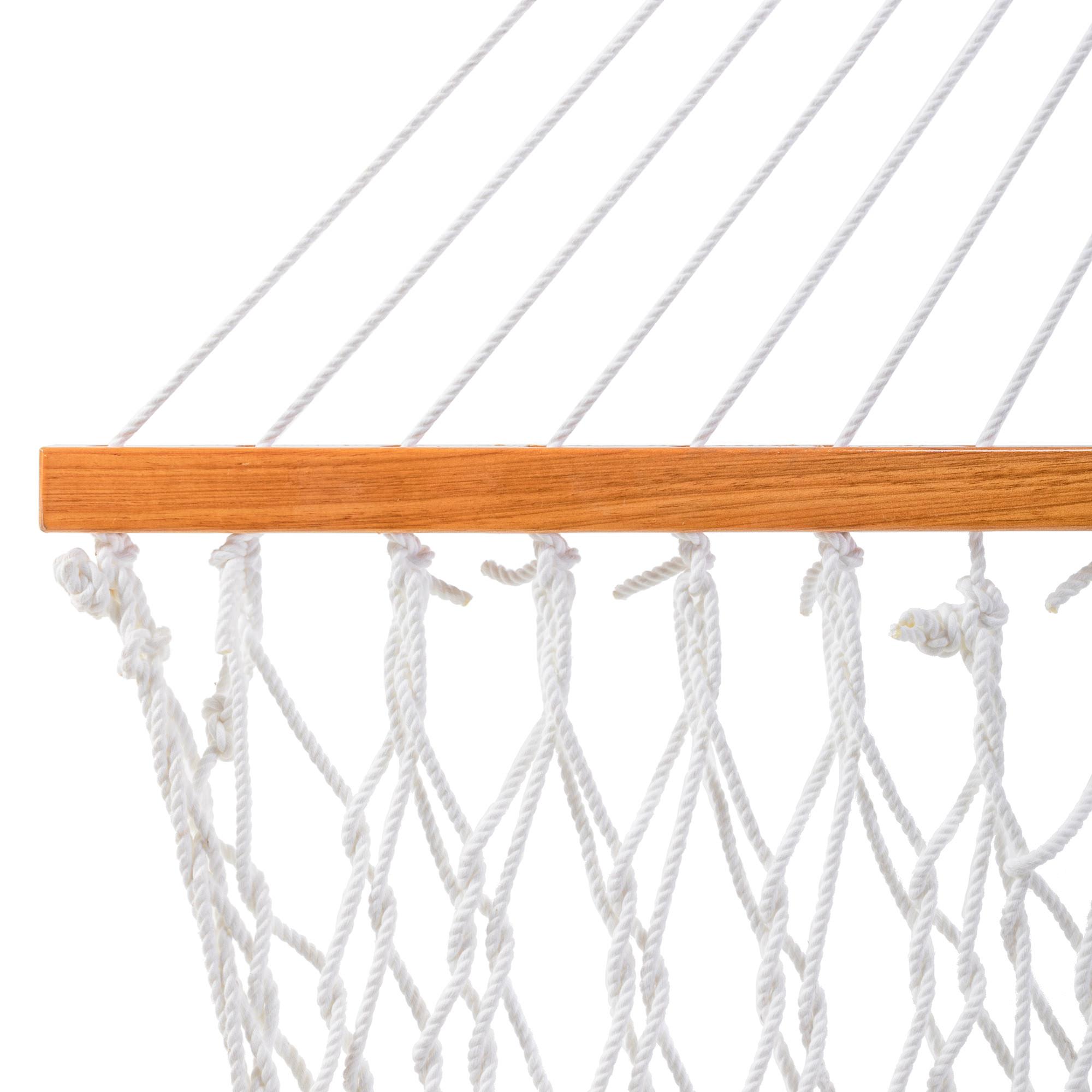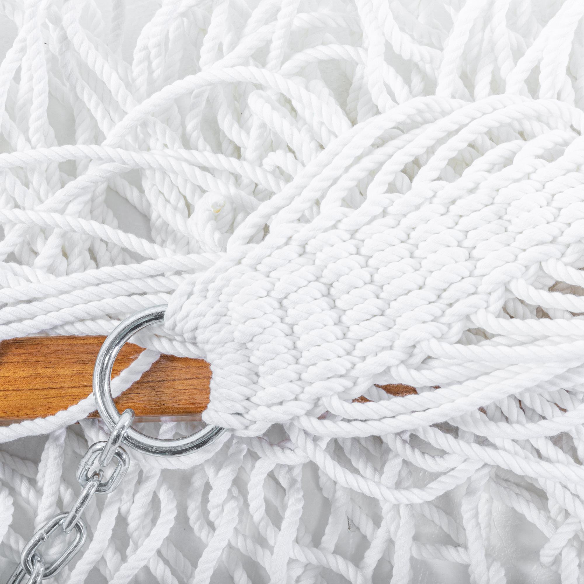 Our own proprietary solution-dyed synthetic blend of rope, DURACORD®, blends the softness of cotton with the durability of polyester. Made in the Carolinas, this combination yields a rope that has excellent color steadfastness and superior feel. DURACORD® is dyed when spun, producing a rope that is colored all the way through. Our DURACORD® rope is the densest rope on the hammock market at 85 ft./lb., this results in less stretching and increased support when relaxing in your hammock.