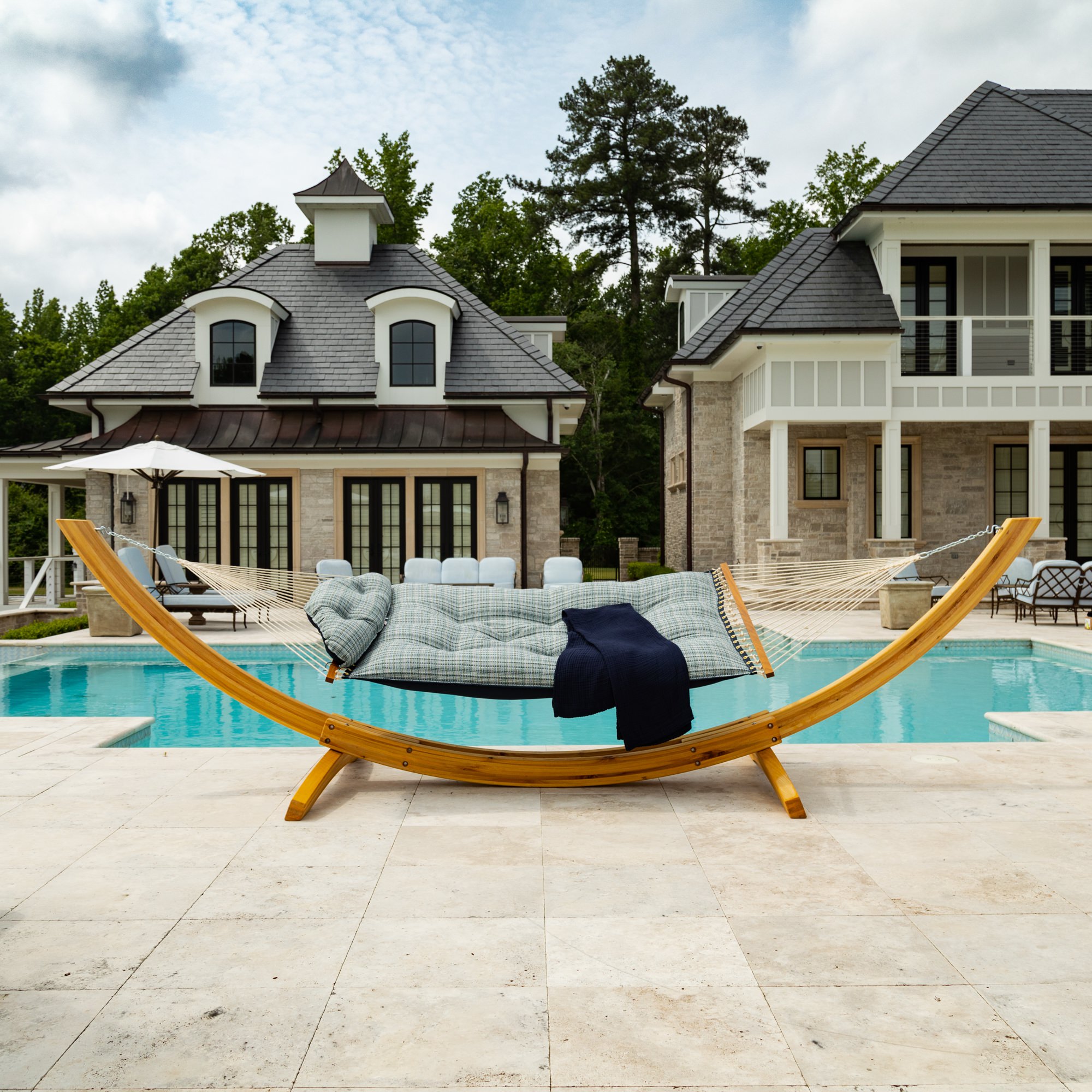 The Large Bella Dura Tufted Hammock with Detachable Pillow Principle Lagoon from Pawleys Island Hammocks embody a rich tradition of craftsmanship and relaxation, offering the perfect combination of comfort, durability, and timeless style for your outdoor haven. Designed for those who appreciate the finer things in life, the Large Bella Dura Tufted Hammock with Detachable Pillow Principal Lagoon transforms your outdoor space into a retreat of style and tranquility. Whether you're soaking up the sun, enjoying a breezy afternoon, or simply escaping the hustle and bustle, this hammock offers a haven of luxury, resilience, and timeless beauty.