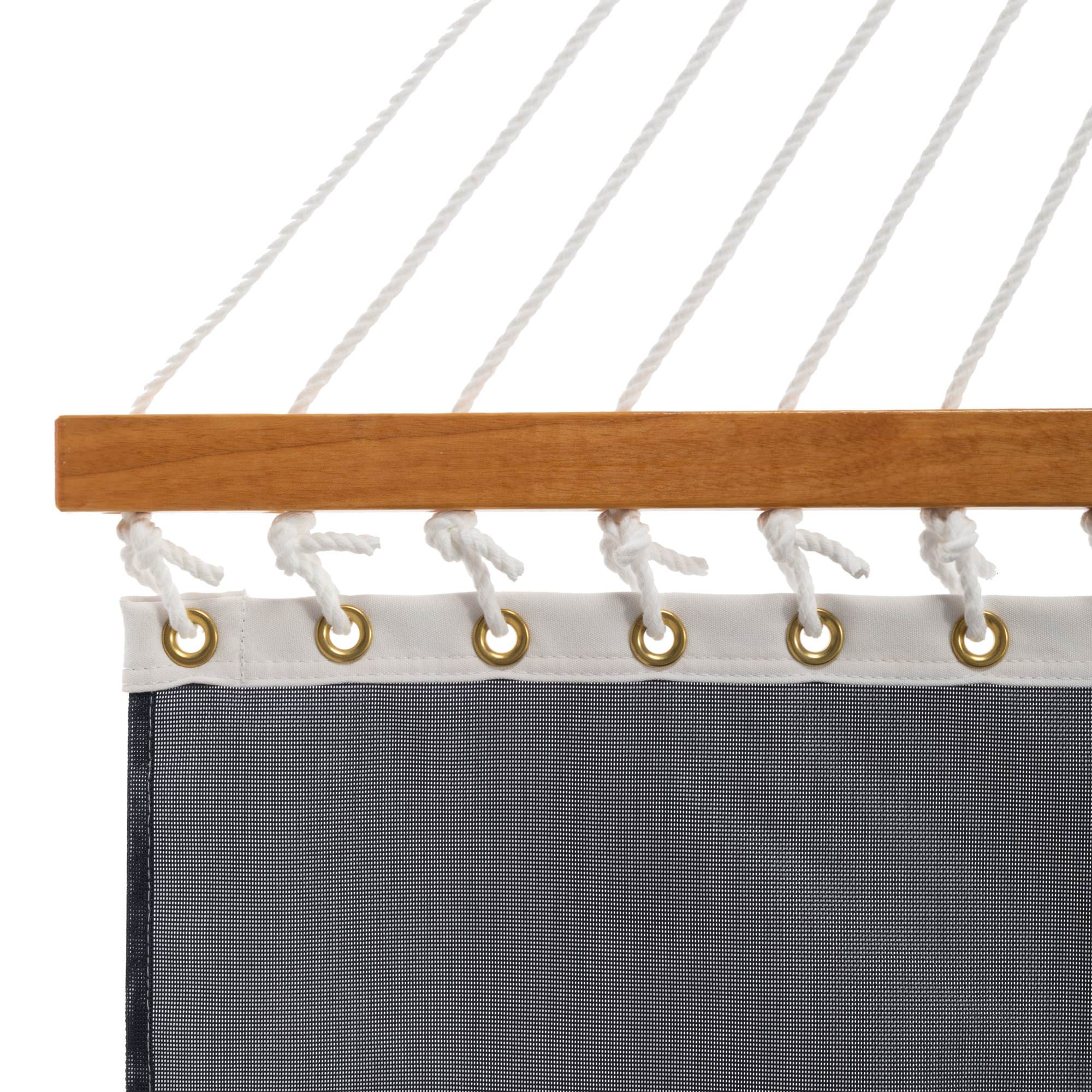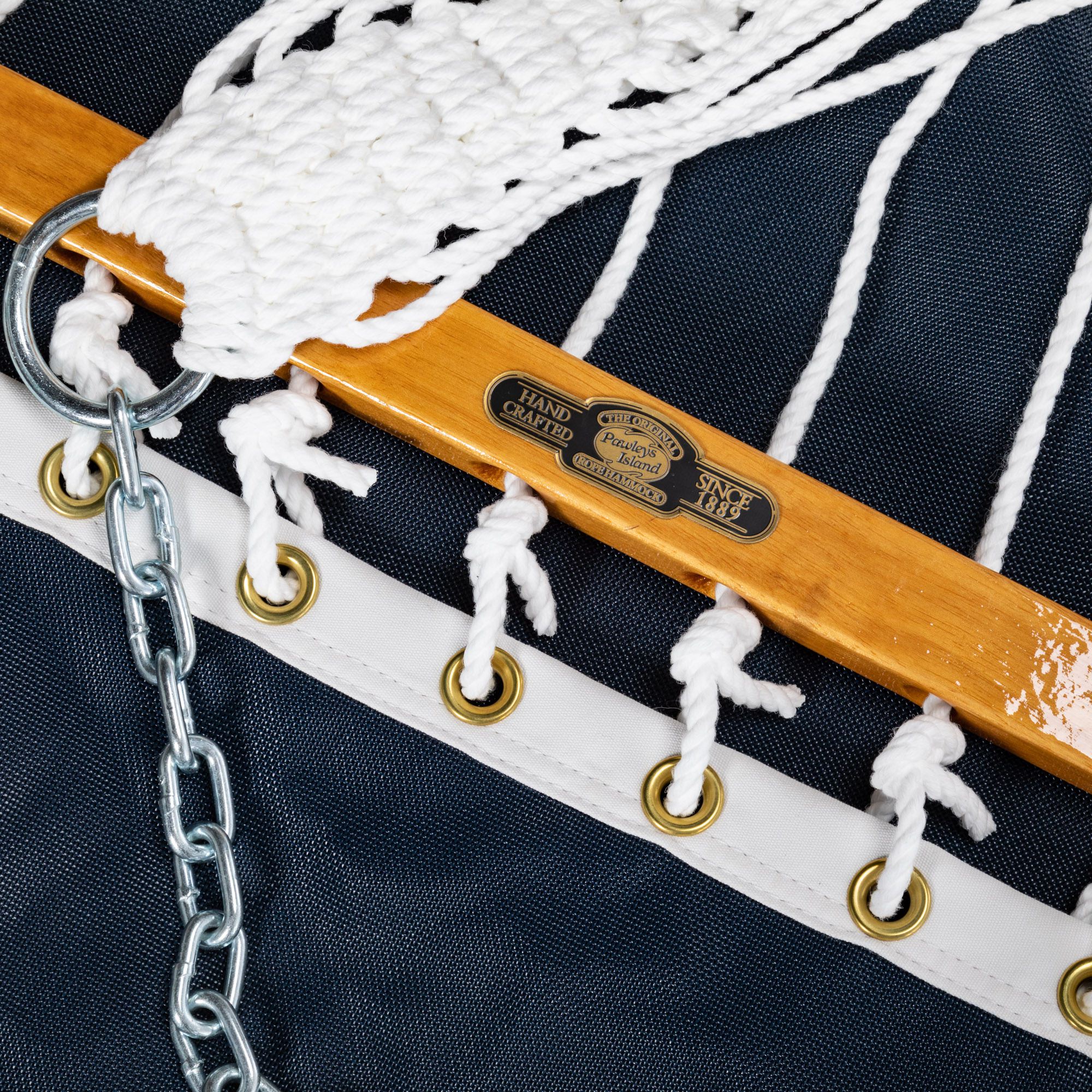 Strong, weatherproof hanging ropes and sturdy hardware ensure secure suspension and a gentle swaying motion that enhances your relaxation experience. Whether you're soaking up the sun, reading a favorite book, or simply enjoying the fresh air, the Large Sunbrella Quick Dry Hammock - Way Navy delivers the ultimate in outdoor luxury. So, when you want to dry off after getting out of the pool by soaking up some sun in your hammock, don’t worry about getting your hammock wet. The quick dry hammocks are recommended for any space, even poolside, shaded and high moisture areas. We use a high-performance Sunbrella Sling fabric that combines the exceptional strength of vinyl yarns with the softness of Sunbrella. This extremely durable outdoor fabric is fade and stain resistant and provides a sleek designer look and effortless maintenance.