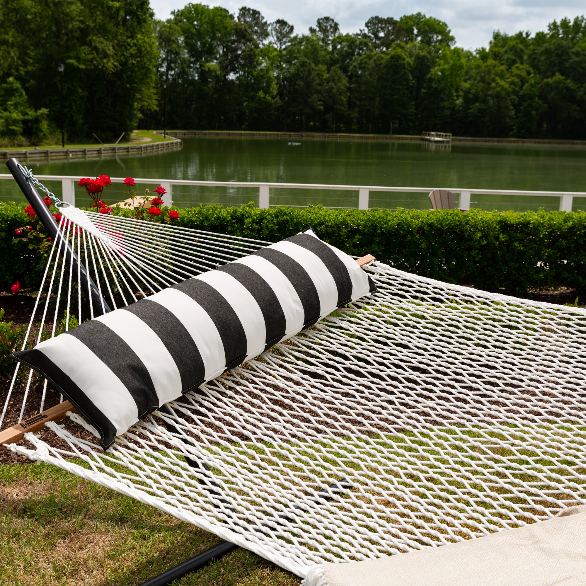 The Cabana Black design exudes sophistication, adding a touch of elegance to your outdoor space. Whether you're lounging in the shade or under the stars, this hammock pillow ensures a cozy and inviting spot for unwinding.