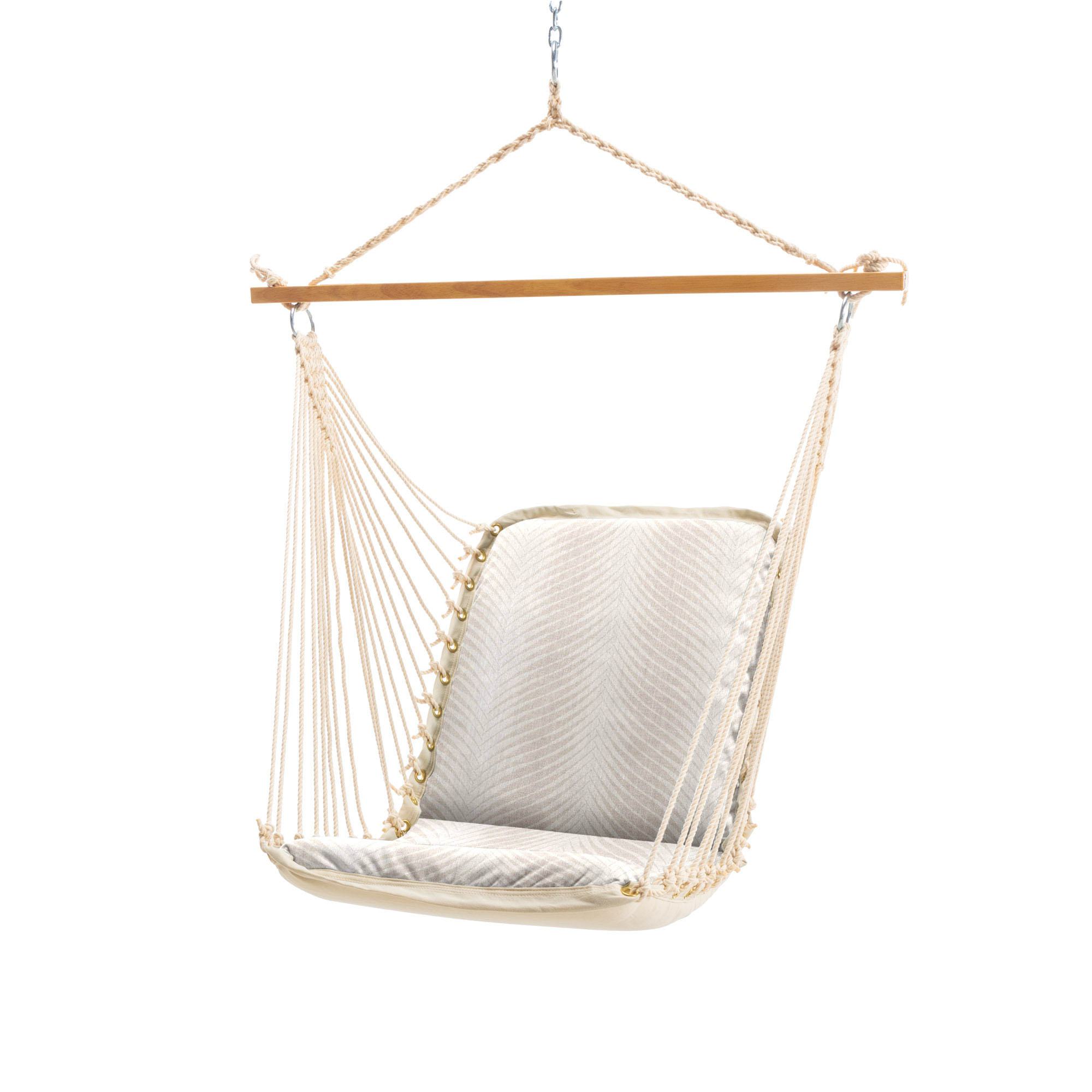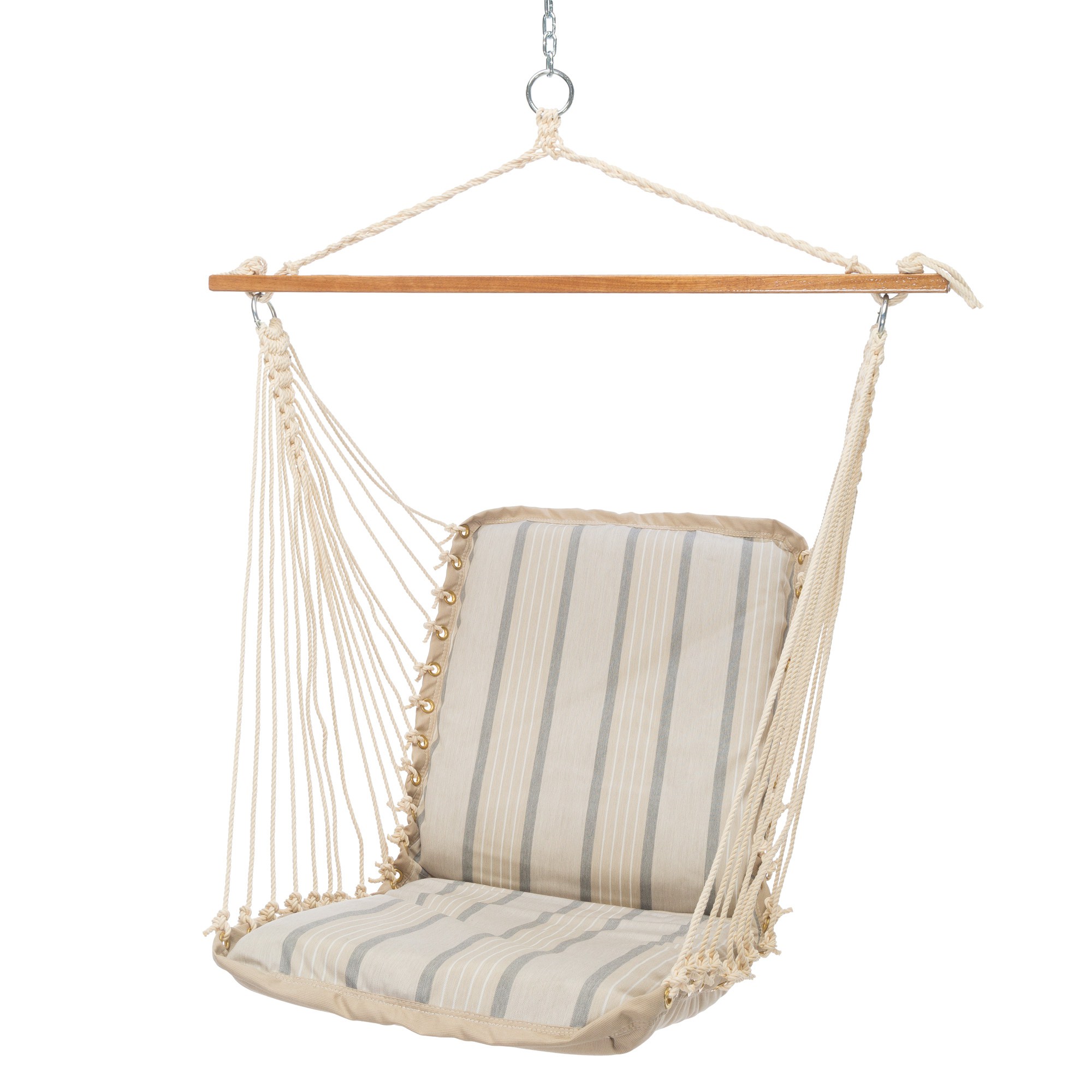 Each of our Single Cushioned Swings are filled with a non-absorbent 1.5” Urethane Foam that is sewn in between the two layers of fabric. The foam adds a pillow-like softness to the already comfortable fabric seat. The Foam Center is a nonabsorbent material allowing water to drain through and provide quick drying.