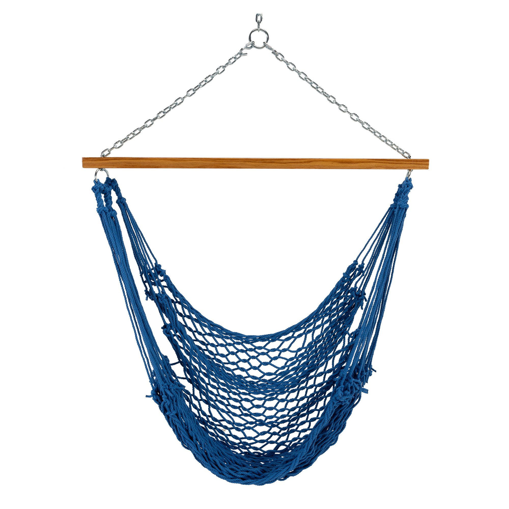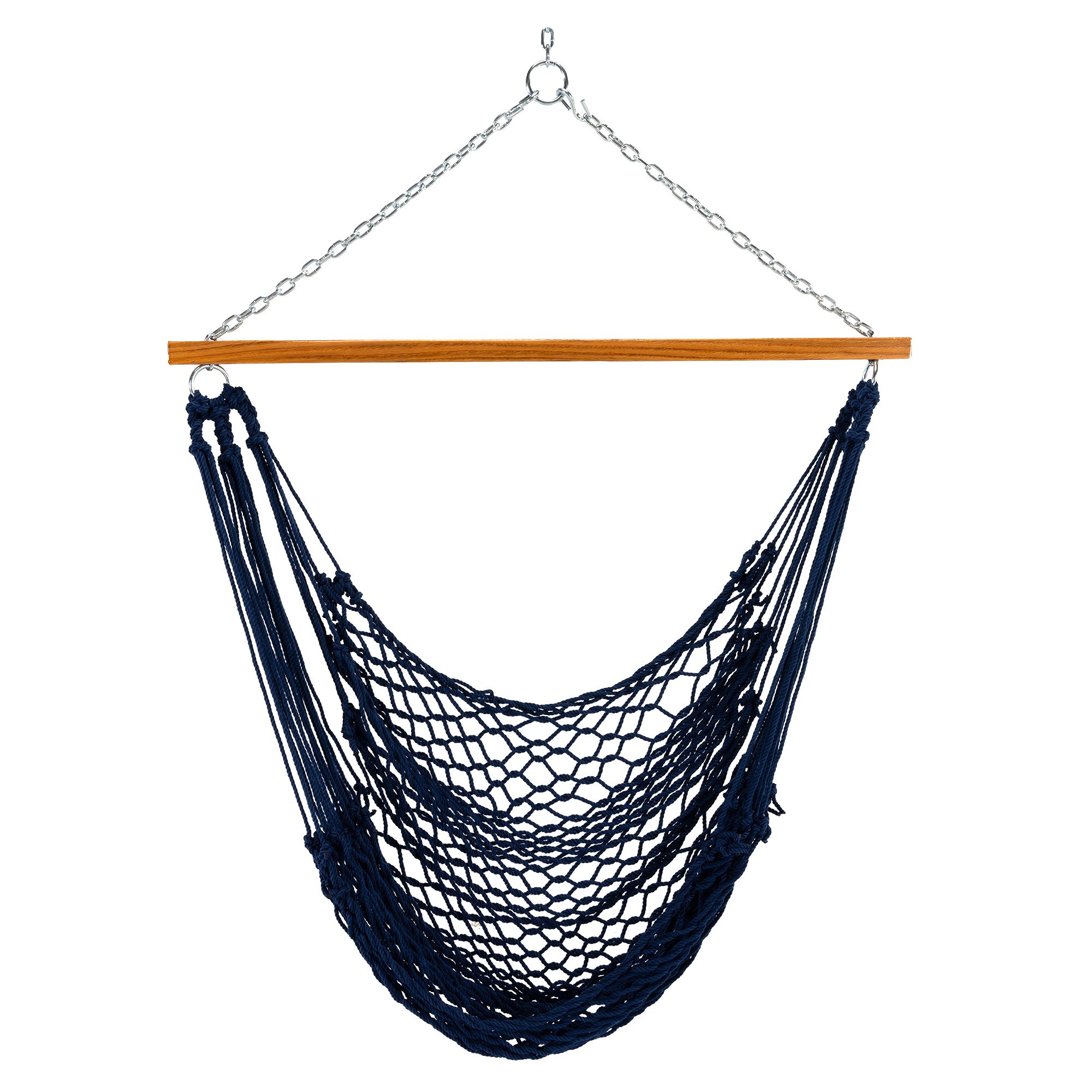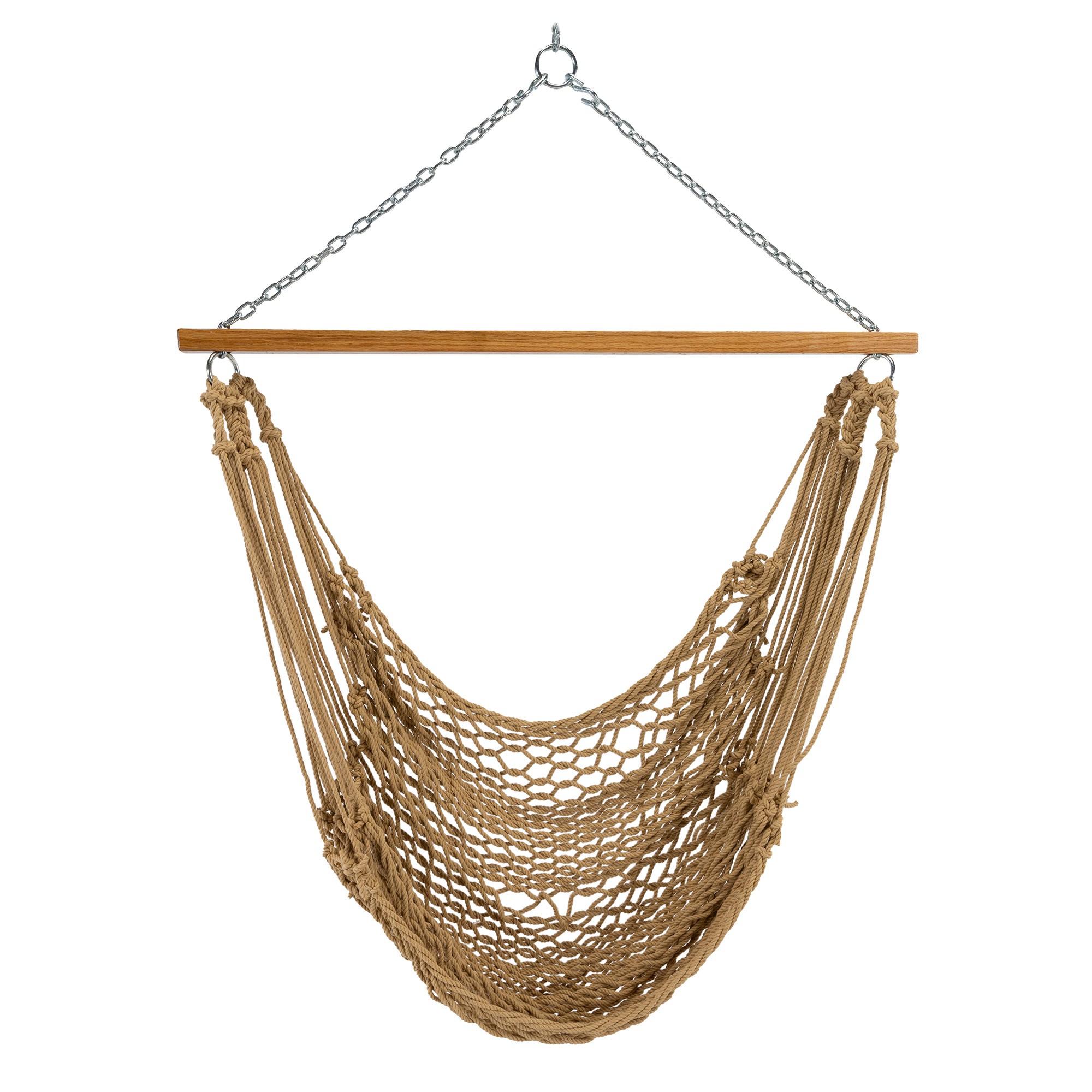 All of our Single Rope Swings are Handwoven by highly trained weavers that have mastered the technique of the Double-Latch Weave. This technique is best described when individual ropes pull against each other to produce a lattice-like design, thus eliminating the need for knots within the rope bed itself.