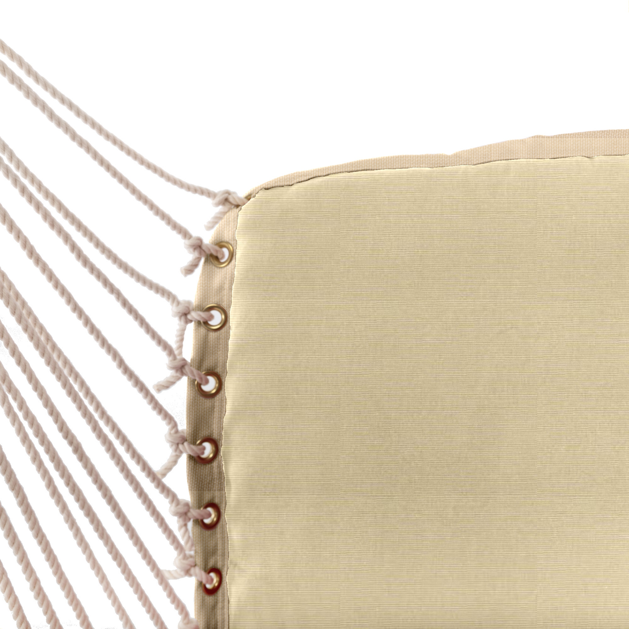 We are very particular with every aspect of our swings even down to the grommets on all our fabric swings. Every grommet we use has tiny spurs on the back of the connecting washer forcing part of the fabric into the lip of the grommet itself, creating a more secure bond. We have also experimented with making the fabric around the grommet stronger by sewing an “X” on the fabric before placing the grommet, by adding that extra stitching it gives those tiny spurs more fabric to grip onto. The industry standard, however, is the telescoping grommet, which our testing has shown rips lose from fabric before the rolled-rim grommet every time.