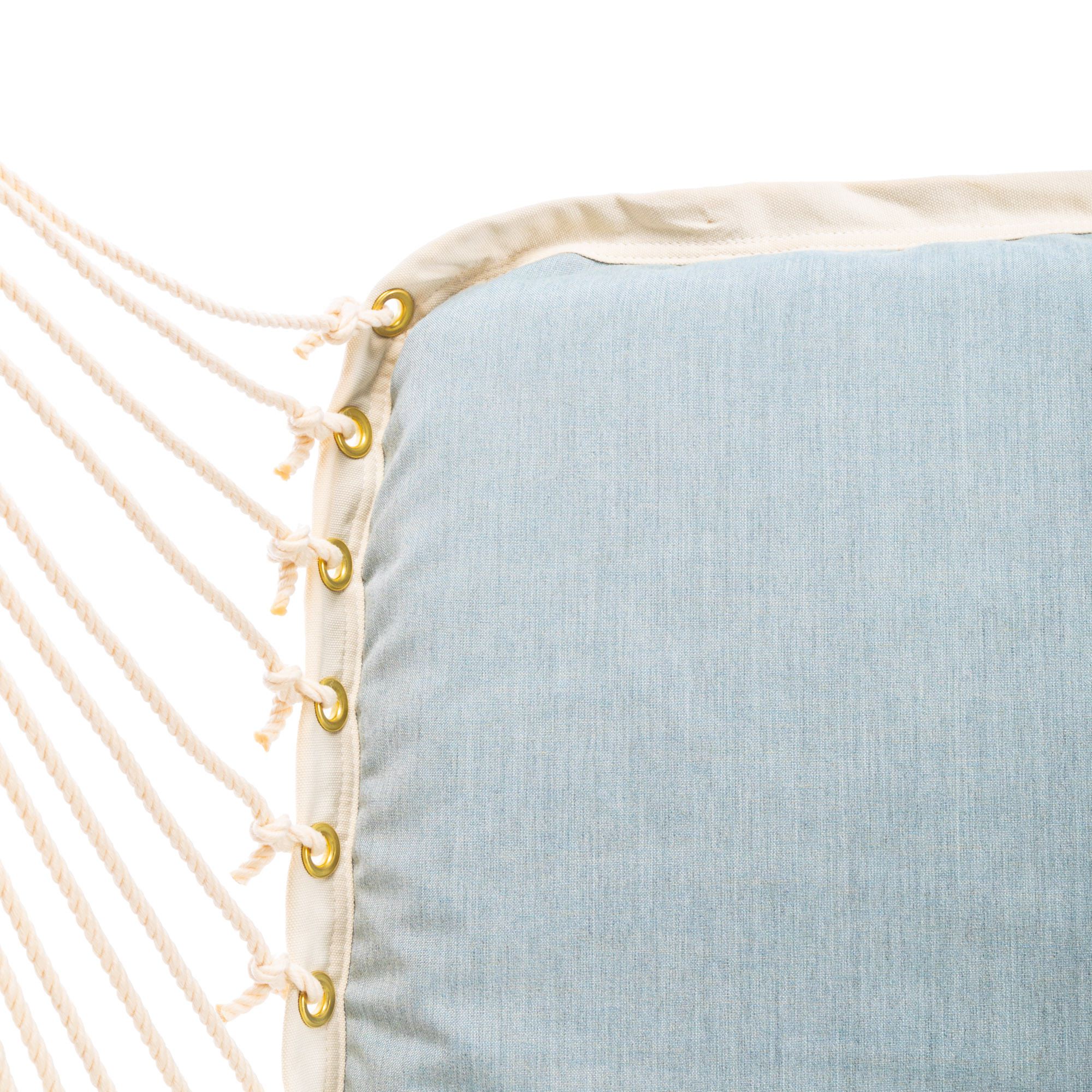 Not only is the craftsmanship of our swings the highest level of quality, but we also choose the highest quality outdoor fabrics as well. We use a combination of Sunbrella® Fabric and our in-house brand Duracord® Fabric. Sunbrella branded fabric is the foremost fabric in the outdoor industry made from 100% solution-dyed acrylic. Solution-dyed acrylic, which means the fibers of the fabric are dyed in color before they are woven into the fabric. Sunbrella is not printed or dyed after the fabric is made. Sunbrella® is water-resistant and will not fade. You can even soak it in bleach and the color will remain the same. Which is why to use Sunbrella® fabric on the tops of our swings. Duracord® is not only fast-drying but is also resistant to rot, mold, mildew, and staining, as well as Sunbrella. We use the Duracord Fabric on the bottom of our Fabric swings because has better abrasion resistance than Sunbrella.