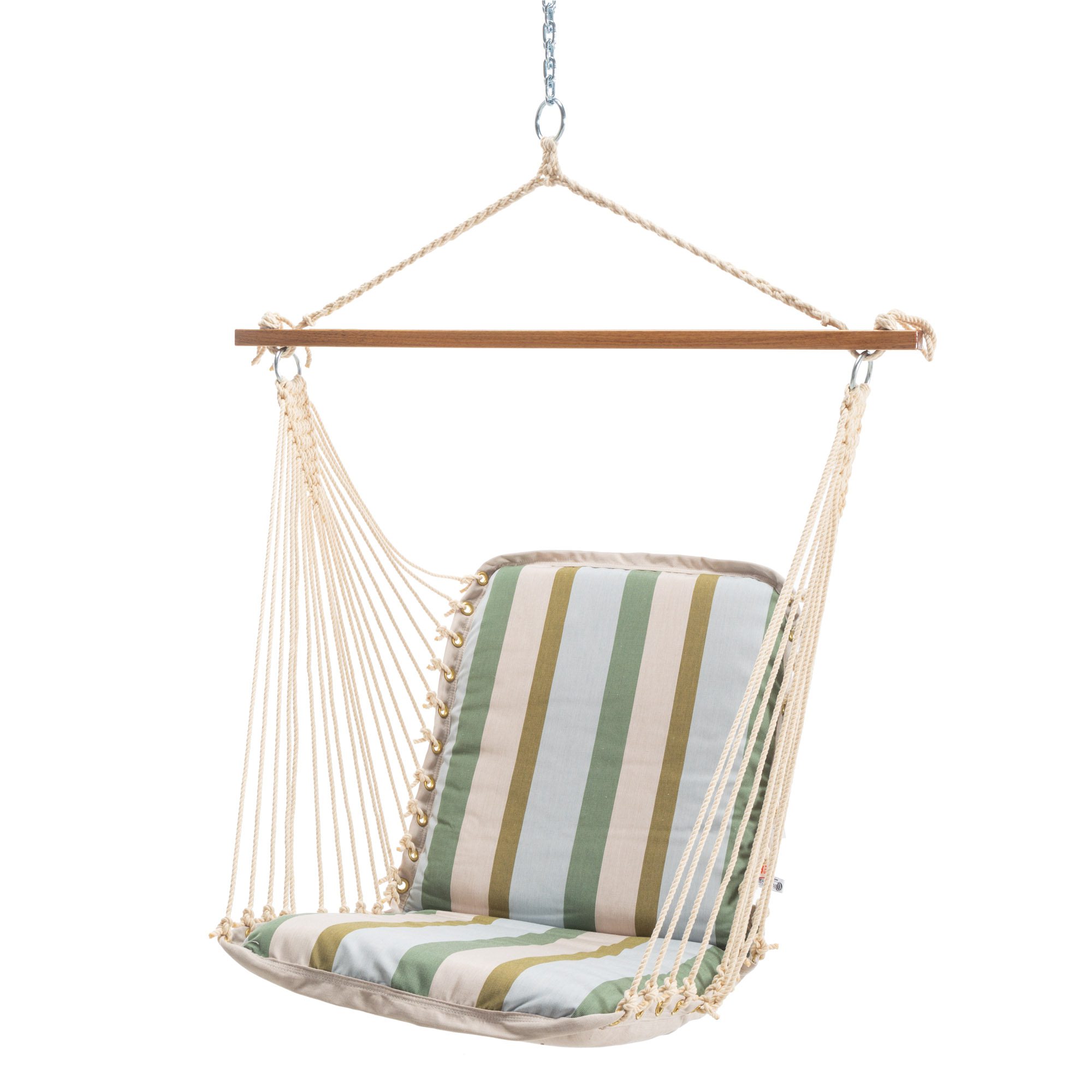 Why not enjoy a quiet afternoon alone in the Sunbrella Single Swing -Gateway Aloe that adds a touch of sophistication and relaxation to any outdoor space. Making it your go-to destination for comfort and style. The Gateway Aloe pattern features a soothing blend of soft greens and neutral tones in classic stripes, bringing a refreshing and elegant touch to your patio, porch, or garden. This versatile color palette effortlessly complements both modern and traditional outdoor decor, creating a tranquil ambiance in any setting.